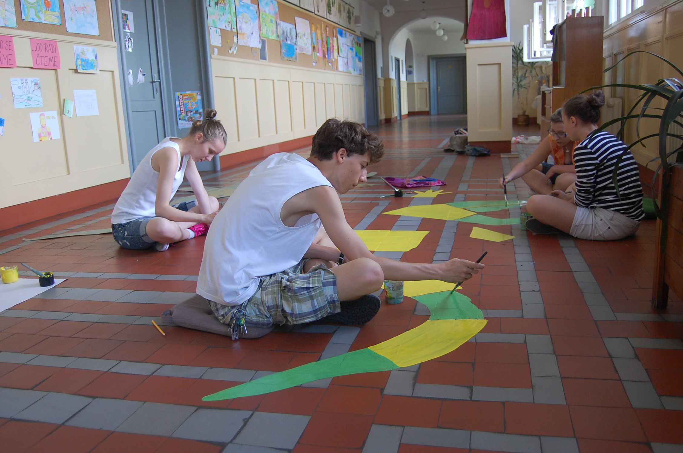 Žáci výtvarného oboru namalovali panáka na skákání pro žáky I. stupně ZŠ kpt. Jaroše v Trutnově.